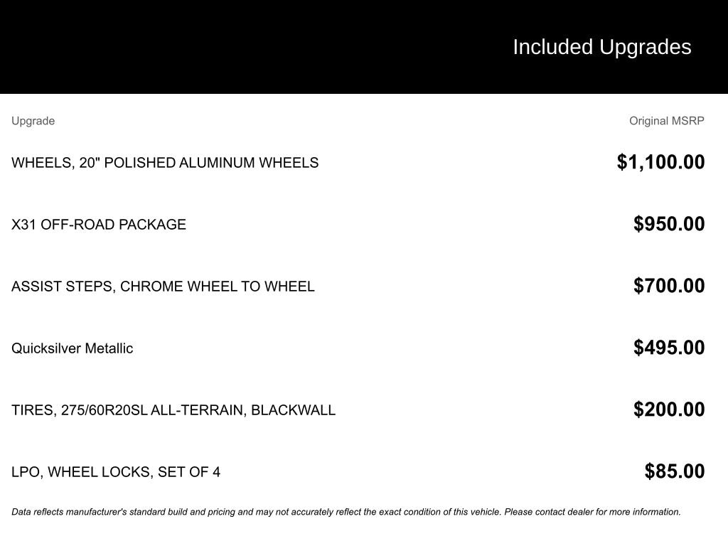 - X31 Off-Road Package$950
