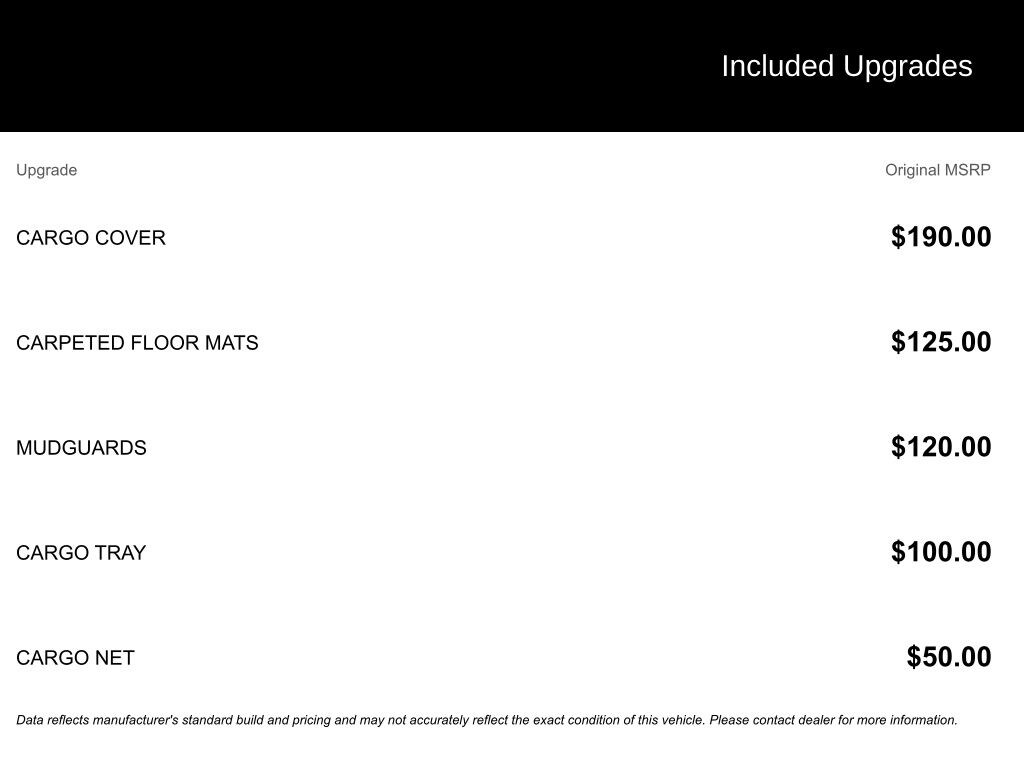 - Cargo Cover$190