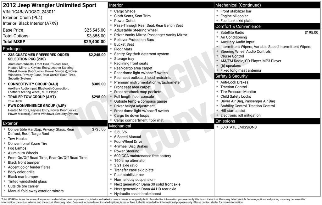 Used 2012 JeepWrangler Unlimited Sport
