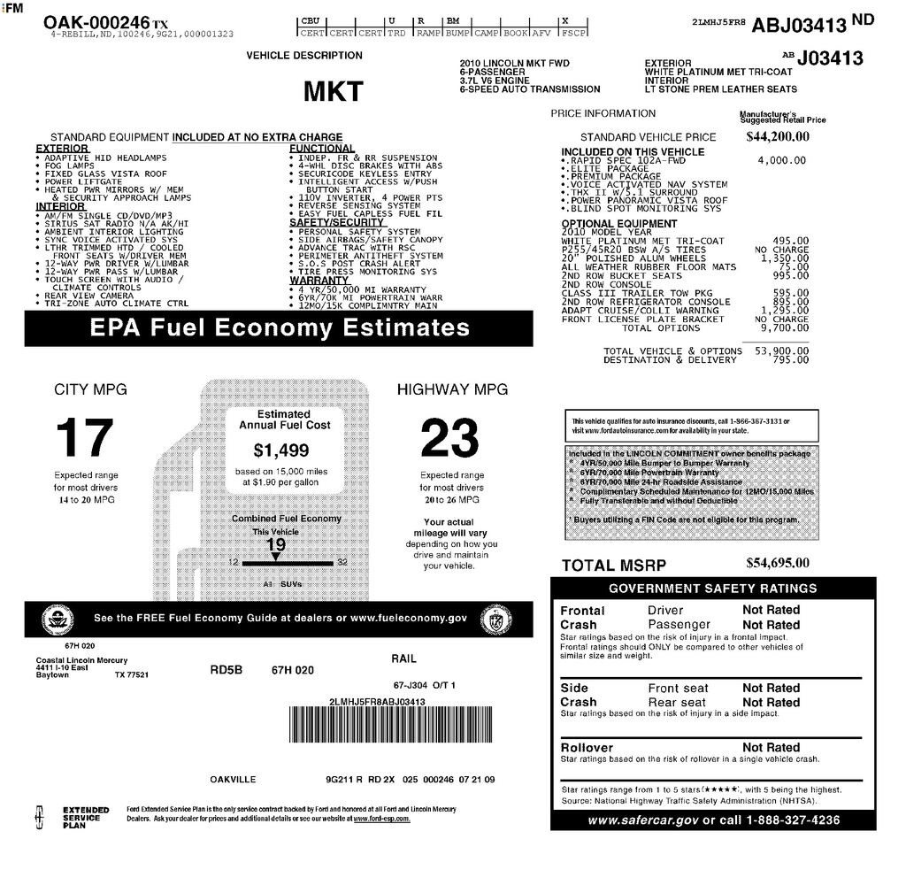 My second MKT, however this one has the Ecoboost engine which is outstanding when needed for passing on 2 lane highway. The exterior fit n' finish could be a little better but the interior is very plush and comfortable, cargo space is very satisfactory. Economy is what I expected, I probably get better mpg than most drivers as I coast up to red lights and leave a red light in the same fashion… - 4.0