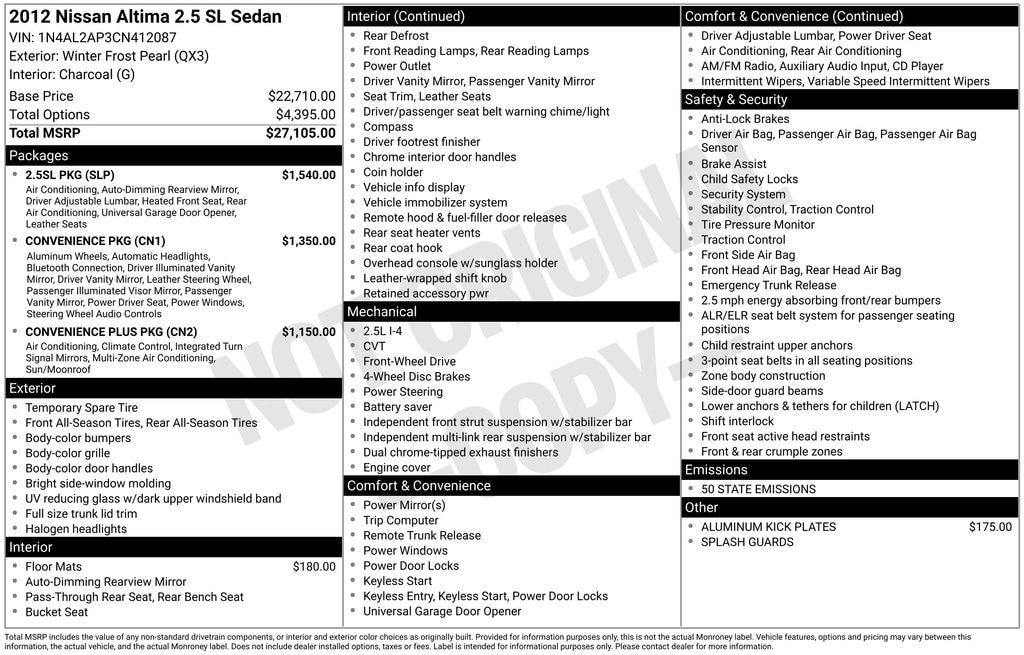 Used 2012 NissanAltima 2.5 SL
